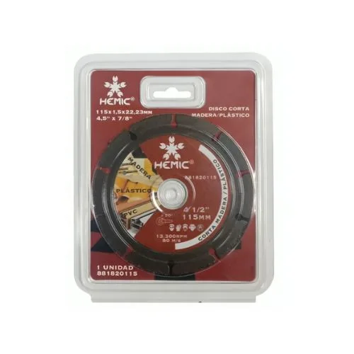 DISCO CORTE MADERA/PLASTICO 4.5" HEMIC